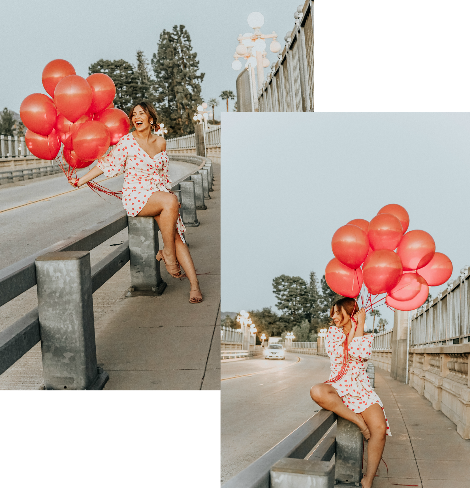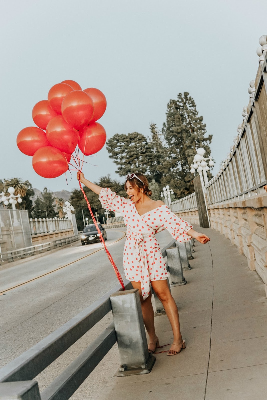 I wore this red polka dot number from Revolve a few days ago and shot at dusk on the Pasadena Bridge. It was a mission to say the least. You try getting 15 red balloons into the car without popping them! This look sparked my idea for this post because I know so many of us look in our closets…not knowing what to wear. Especially for holidays like this one.